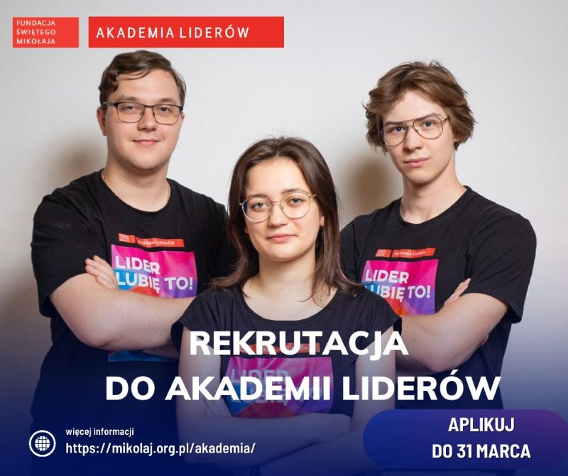 Fundacja Świętego Mikołaja poszukuje młodych, zaangażowanych społecznie osób, które wezmą udział w Akademii Liderów w 2025 roku. Akademia to bezpłatny program rozwojowy dla młodzieży. Fundacja prowadzi Akademię już po raz 10! Rekrutacja w tym roku trwa do 31 marca na stronie Fundacji – www.mikolaj.org.pl. Akademia Liderów zapewnia uczestnikom nie tylko rozwój umiejętności przywódczych, ale także przestrzeń do budowania relacji i współpracy. Program oferuje 10-dniową szkołę letnią z intensywnym szkoleniem w zakresie komunikacji, zarządzania projektami i pracy zespołowej, możliwość uczestnictwa w inspirujących spotkaniach z ekspertami, wsparcie indywidualnego tutora, roczne stypendium w wysokości 3000 zł oraz udział w 4-dniowej szkole zimowej. Program jest dla uczestników bezpłatny.